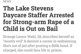 The Lake Stevens Daycare Staffer Arrested for Strong-arm Rape of a Child is Out on Bail