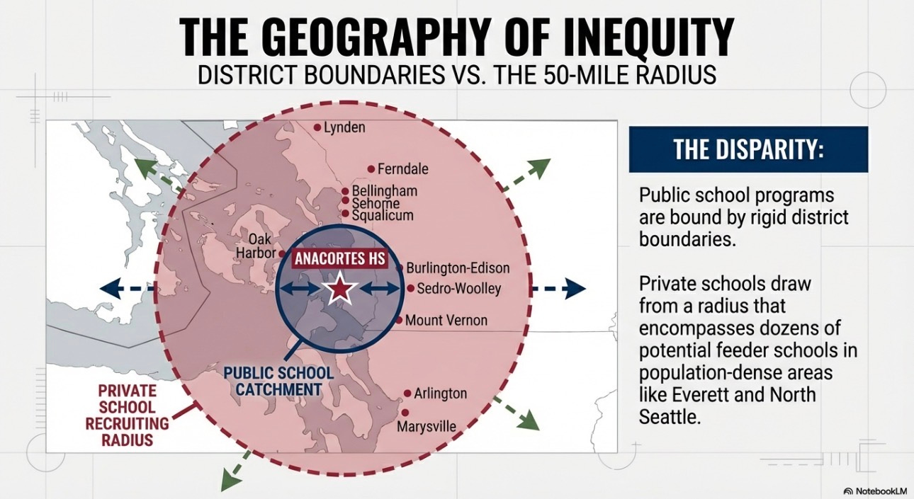 “Without a doubt, a school with a 50-mile recruiting radius in a population dense area like Everett /North Seattle should not be playing 2A sports,” the coaches argued.