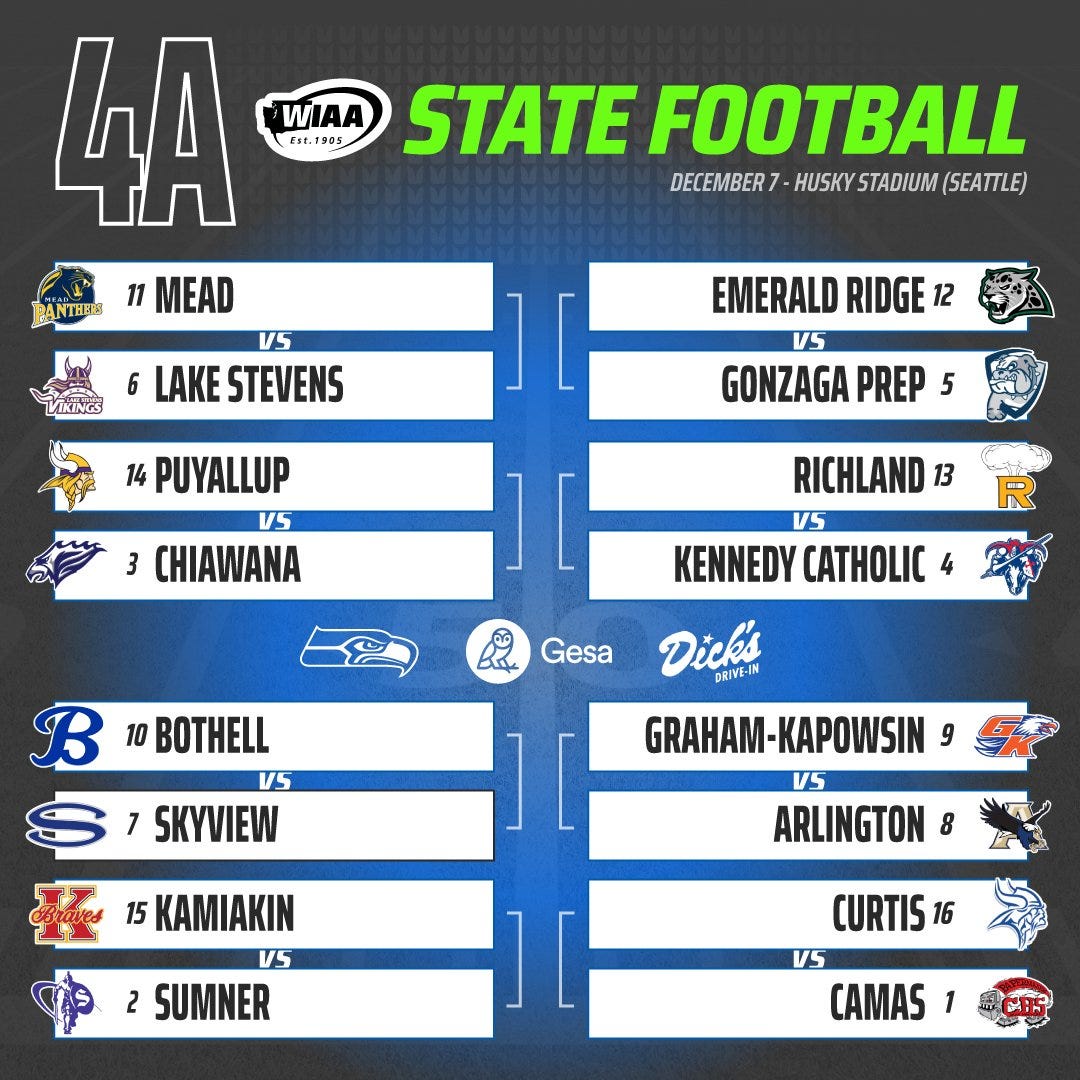 Breaking: 4A 🏈 Bracket Set — #6 Lake Stevens hosts #11 Mead - Sat. 2 pm