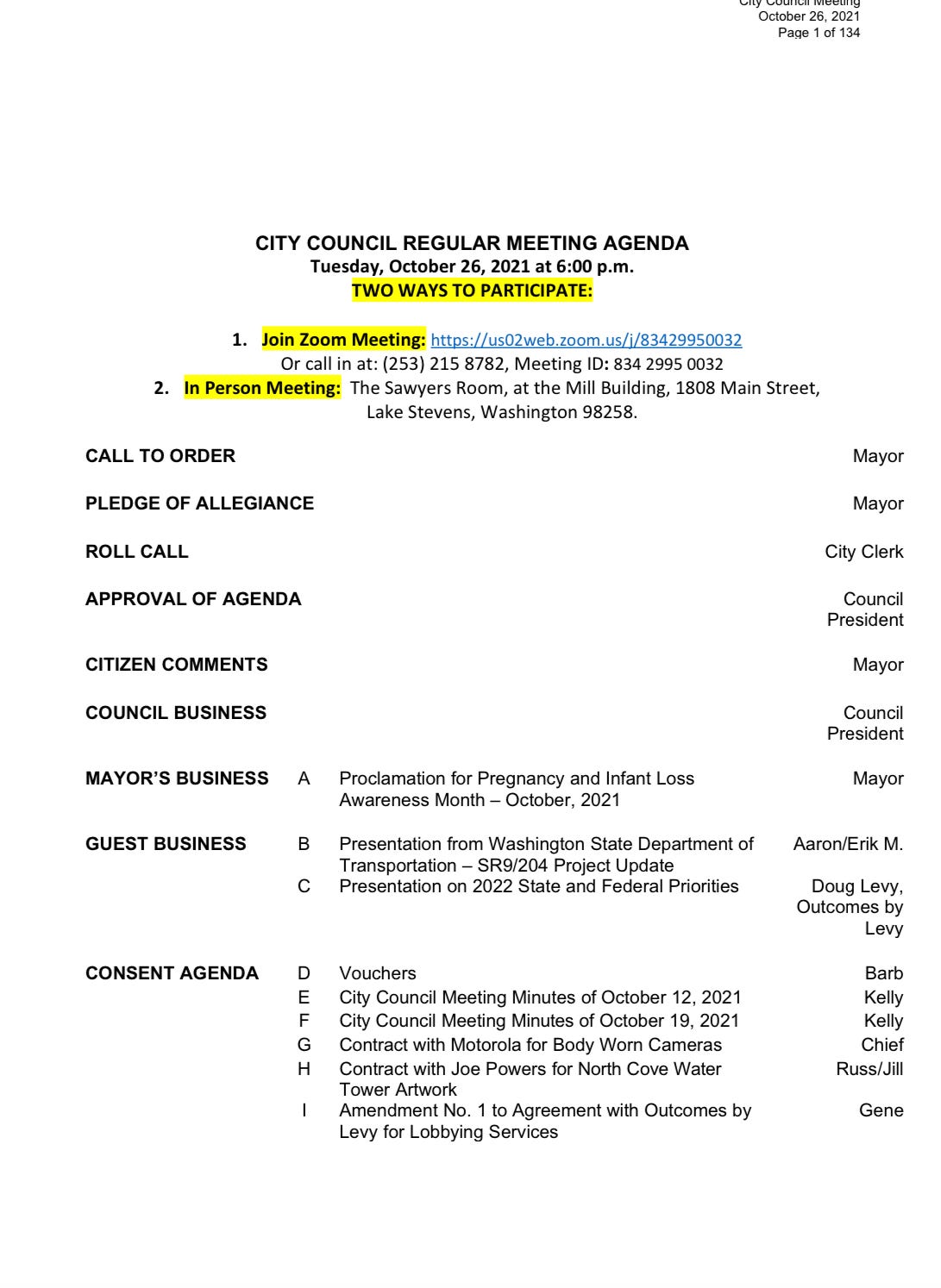 Real live in-person City Council meetings return to The Mill in downtown Lake Stevens this Tuesday, October 26 at 6:00pm.