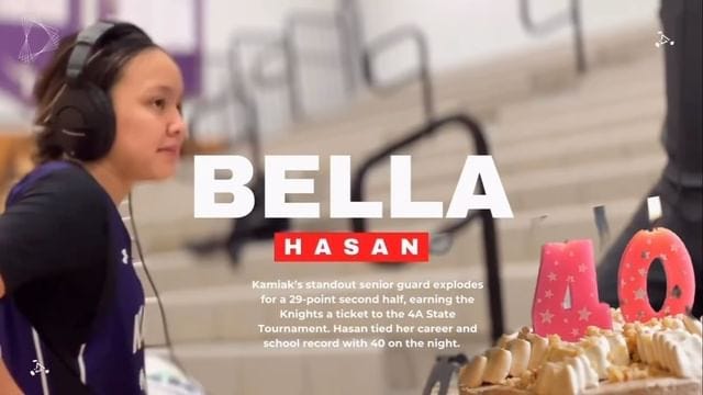 The Knights were powered by incandescent senior guard Bella Hasan who ignited for 29 second half points in a flurry of pull up three pointers, free throws and gravity defying drives in which the 5’5 star launched herself towards the rim, hurtling into the air with the kinetic energy of a bullwhip unfurling.