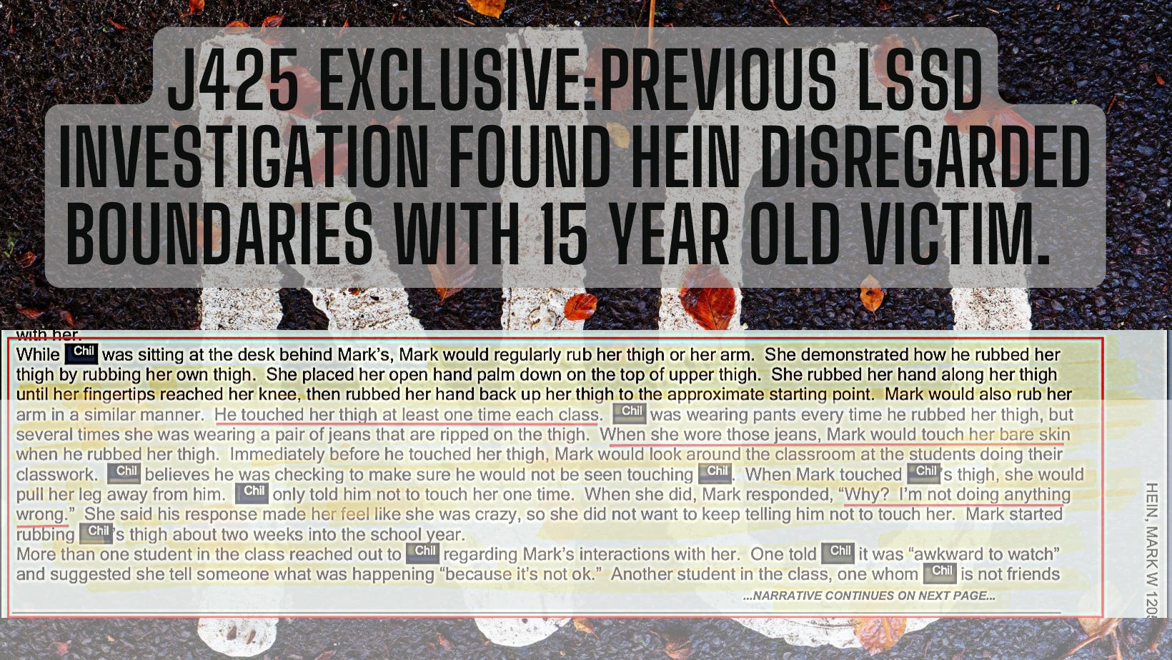 Exclusive: Prior to Arrest, District Probe Found Hein Committed "Boundary Invasions" Against Minor Victim