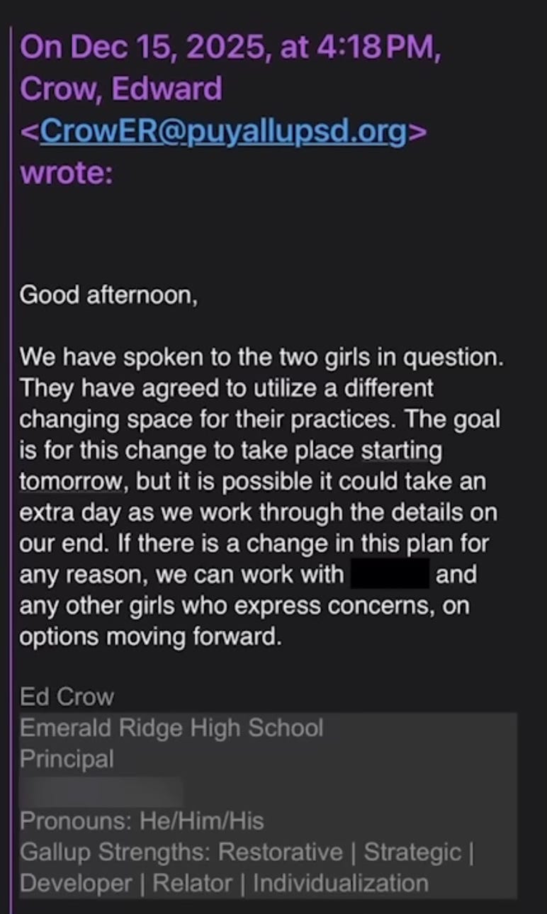 J425 reported Keeler’s allegation last week, as well as reports that Puyallup School District ignored safety complaints lodged by 13 of the transgender wrestler’s female teammates. Both schools are part of the Puyallup School District.