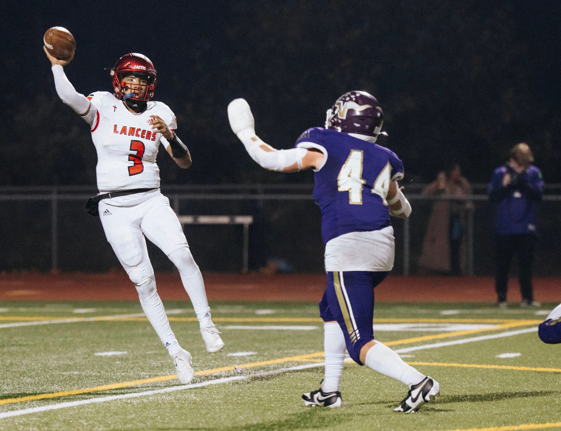 Lake was briefly thwarted when its next drive, featuring Paul Varela's 42-yard sweep, ended with Mooring's 20-yard field goal try being blocked, KC recovering on the Lancer nine.