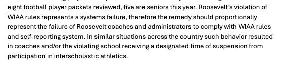 Let’s not bury the lede: by the letter of the law, given the reported facts of Stokes’ move north, by the letter of the regulations, the Rainier Beach star appears to be ineligible, and if he was granted eligibility improperly by SPS district officials, it could have shattering ramifications for the school, the district and the region, especially considering the June 2025 Roosevelt recruiting scandal findings, in which SPS Athletics, SPS AD Pat McCarthy and Metro League were all put on probation. This after the fact finder appointed to investigate Roosevelt/SPS stated that in similar situations nationwide, a period of suspension from athletics was the typical penalty.
