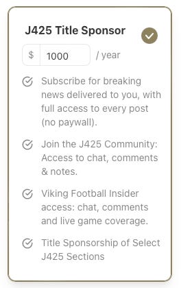 Despite a recent run of new subscribers pouring into J425 — thanks to Antonio that’s pushed our local readership to over 3,000, a shocking recent crime has left Your Home for Viking Football teetering on the edge of the financial abyss. Now, we’re asking out readership to chip in if they can, using any one of the various methods we’ll suggest to you. Until the end of the month, we’re offering 25% off of our annual subscriptions — our best deal yet. For the serious J425 reader looking to get more involved in the community