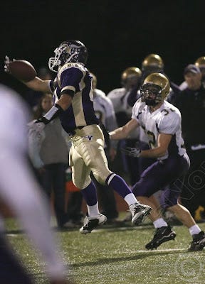 I'm sooo glad Rob got a shot of this play, because it was the play of the game, no doubt. After Baker and Riecks led an 85 yard drive to start the second half and put the Vikes on the scoreboard 7-6, LB Trevor Riecks made an incredible one-handed interception of a James Jordan pass, giving the Vikes the ball deep in OH territory. Dylan Youngblood scored…