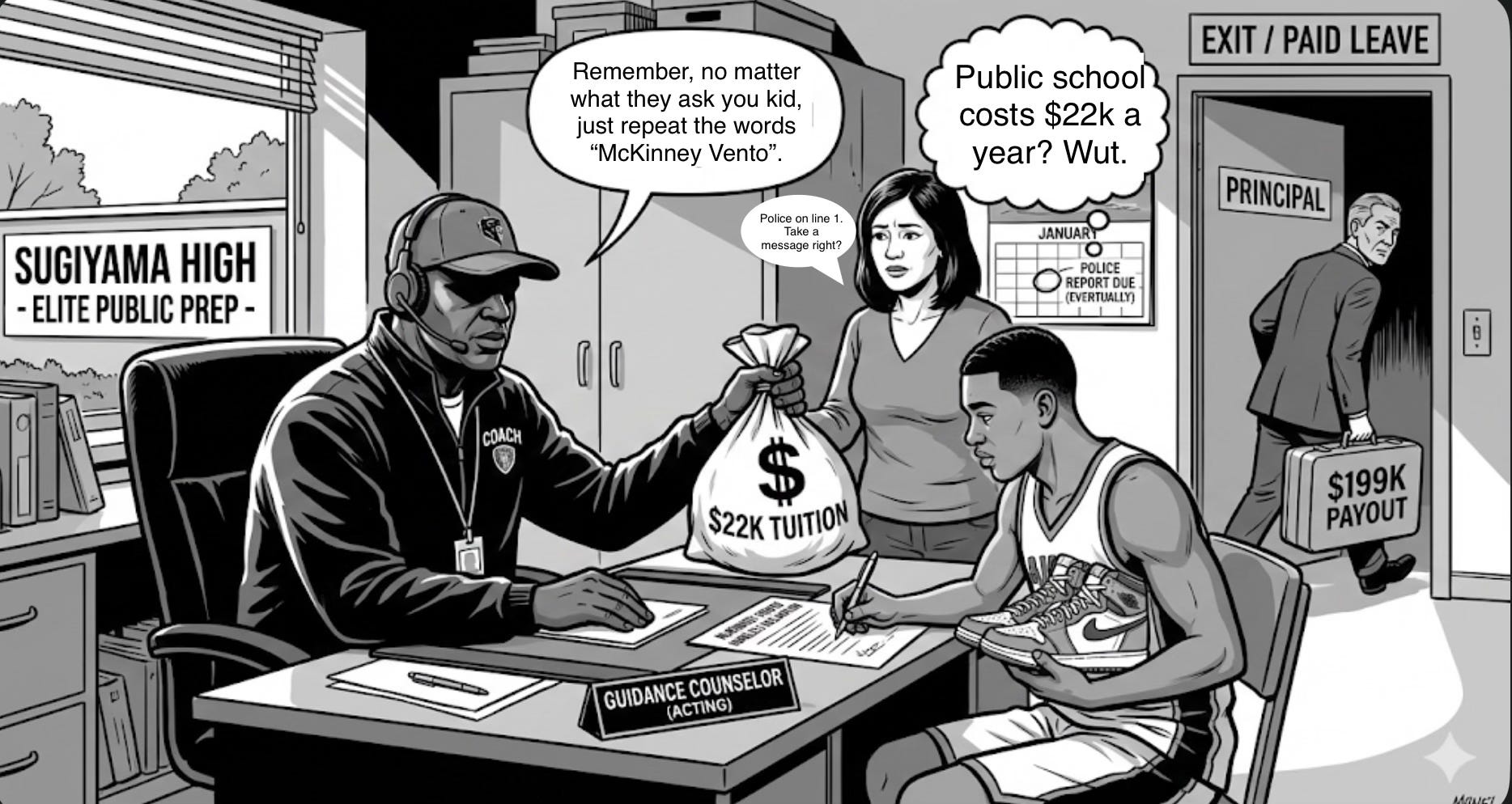 Under Powell’s leadership, the program essentially ran a pay-for-play scam within a public school, robbing parents of up to $22,000 a year in “tuition”. To bypass out-of-district enrollment deadlines, the program fraudulently instructed families—some from as far away as New Zealand and Senegal—to enroll as homeless under the federal McKinney-Vento Act.