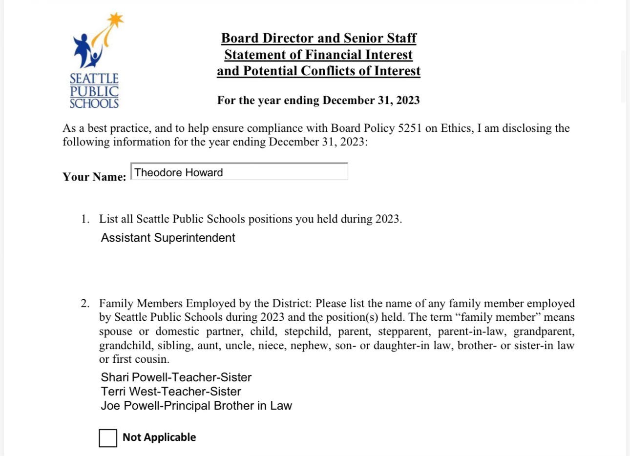 For instance, recent J425 reporting has focused on the Patu-Jackson family overlap between Seattle Public Schools and the federal Jackson Drug trafficking organization indictment. But The Patu-Jackson-Bethea dynasty isn’t the only family exerting pressure inside SPS. Consider accountability czar Ted Howard and his brother-in-law Joe Powell.
