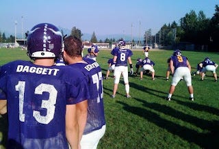QB Bryson Daggett (13) watches as WR Chameron Lackey takes snaps in the Viking wildcat package. Kevin Hulten/Purple and Gold Pigskin