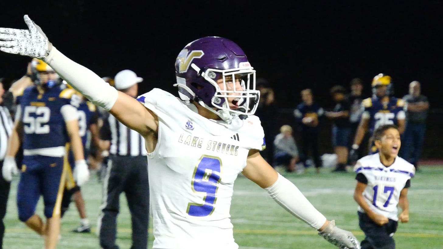 The Vikings defeated the 2024 3A runners-up in Bellevue last Friday 21-14, overcoming a 14-7 halftime disadvantage before slowly throttling the life out of the Wolverines in a dominant second half punctuated by junior safety Felix Ramsey’s game-altering red zone interception, ending what would have been a long Bellevue scoring drive late in the third quarter.