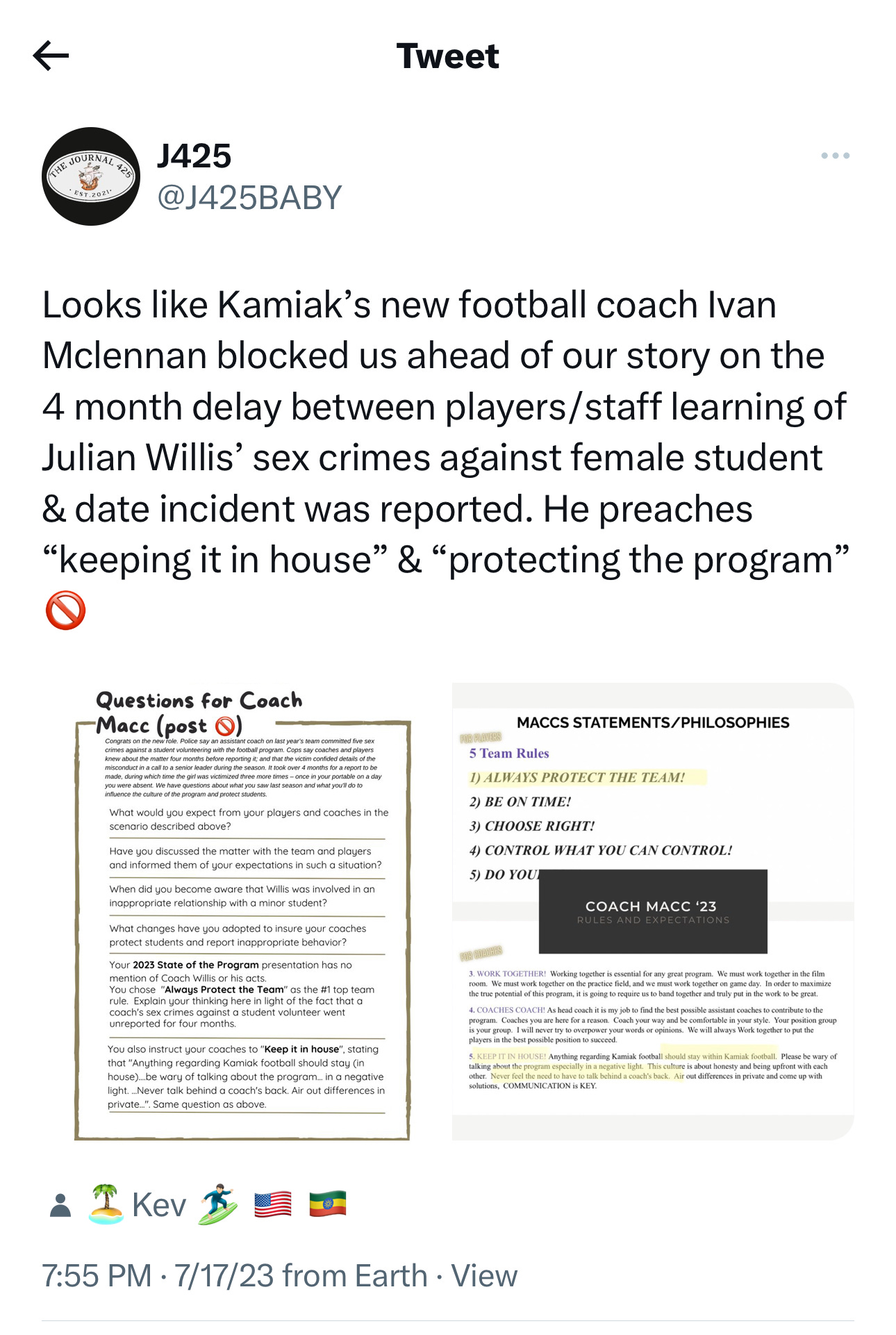 Kamiak Football Players & Staff Aware of Willis Misconduct Months Prior to Law Enforcement Notification