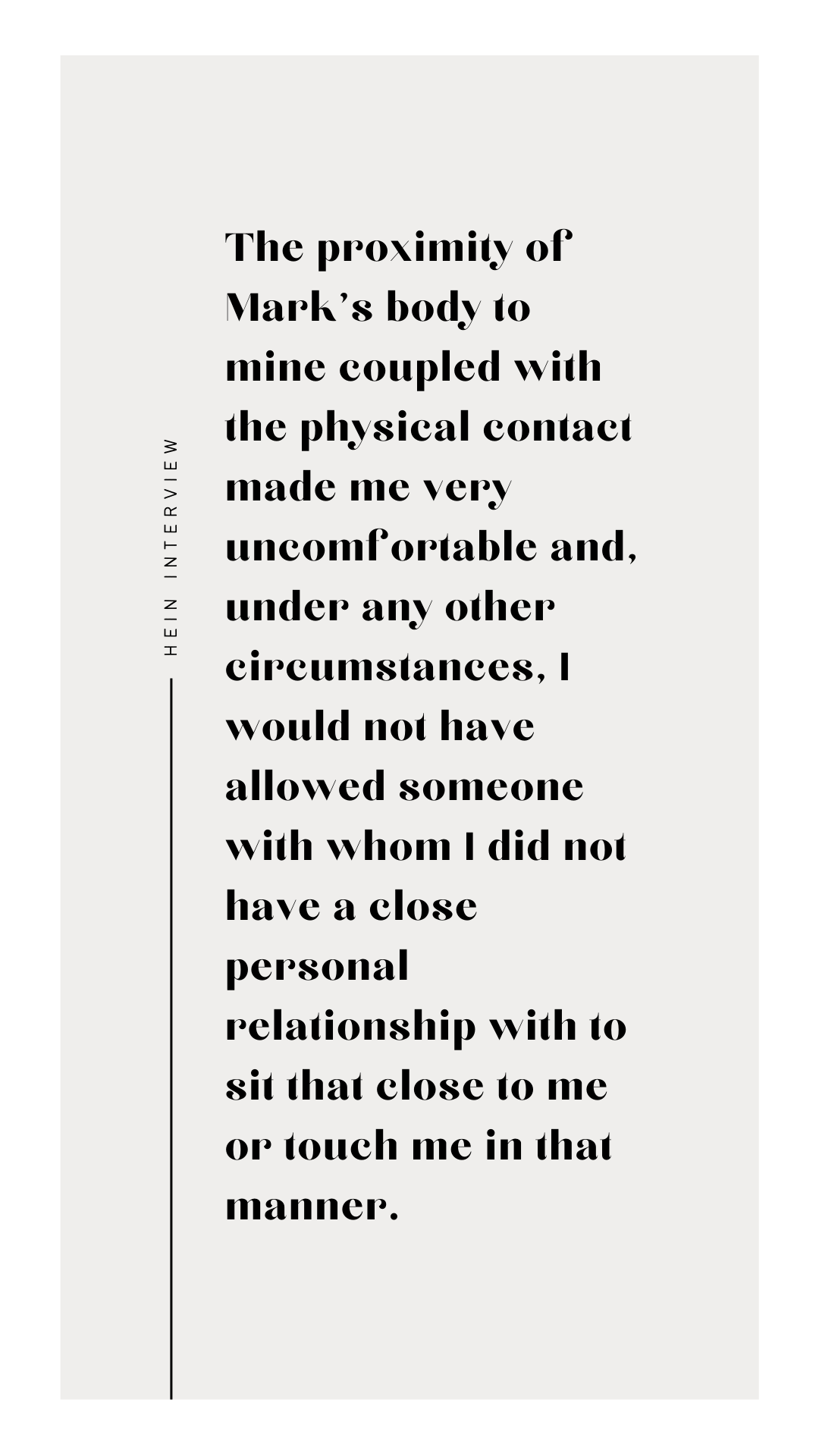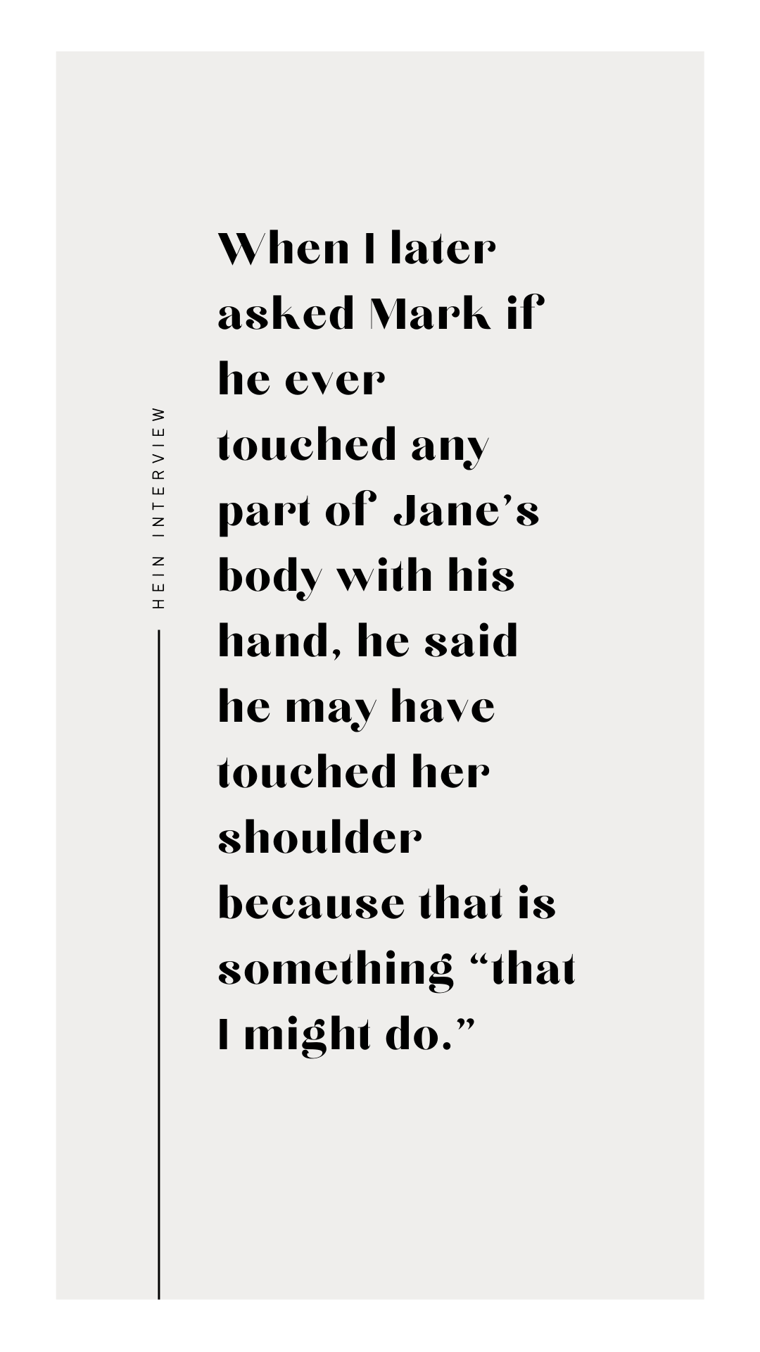 - Detailed description of the level and frequency of unwanted touching that Jane was subjected to, including unwanted touching that occurred after Jane directly told Hein to stop.