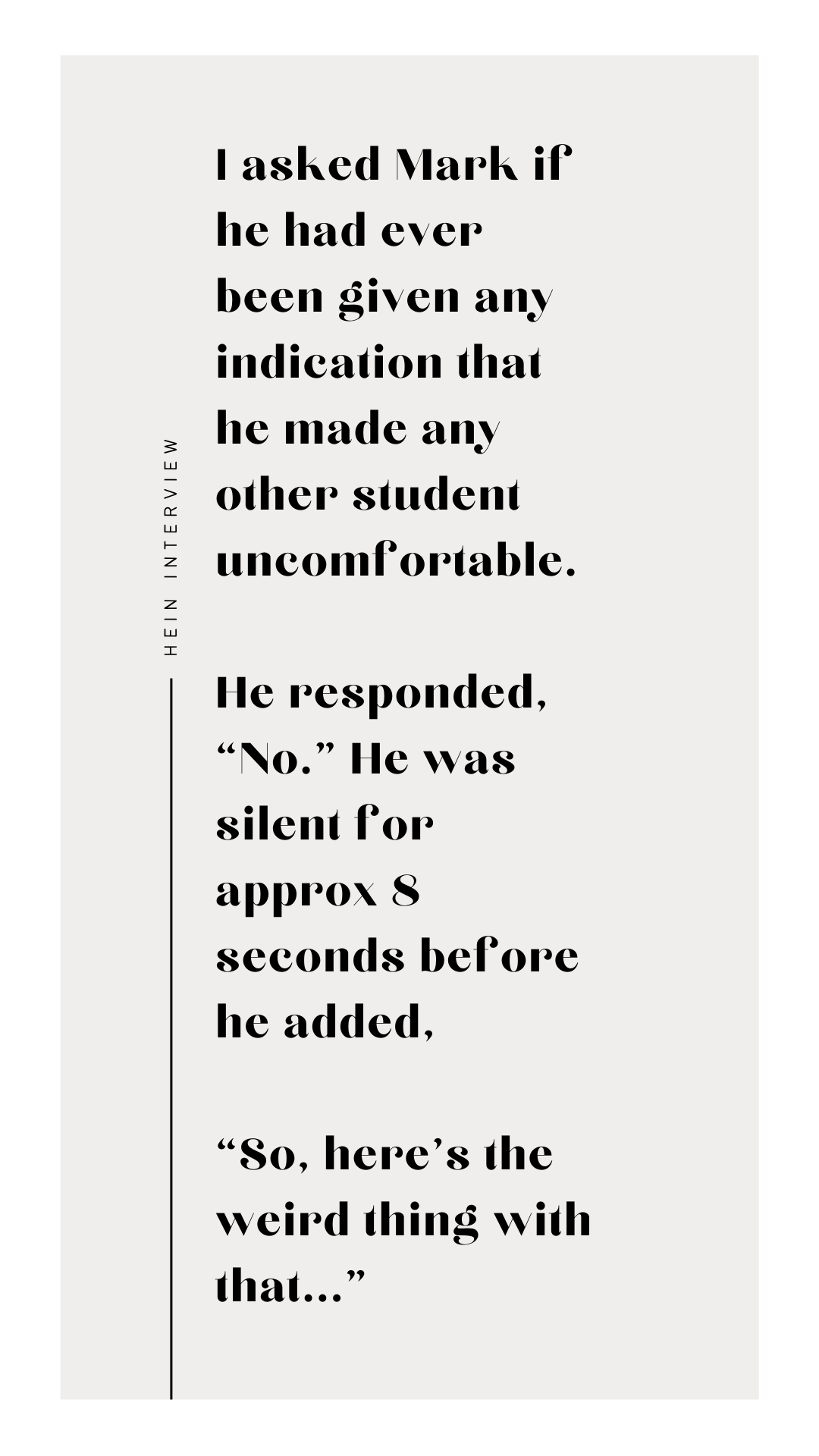 And that’s not all. Because Detective Kristin Parnell included a transcript of her suspect interview with Mark Hein in the probable cause packet filed at the time of his arrest, we are provided a preview of the information that the district must now evaluate in its ongoing administrative inquiry into the Hein matter.