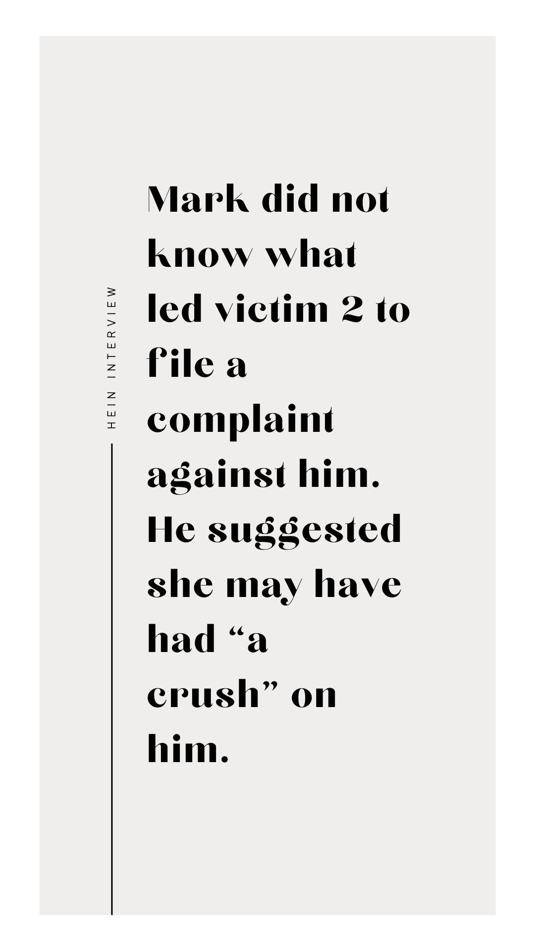 Parnell’s interview – and Hein’s direct responses – also provide the public with their clearest look yet into Hein’s direct response to these allegations. Accordingly, before we dive into the interview, we’ll run you through a quick refresher of the allegations Hein faced as he sat down across from Detective Parnell.