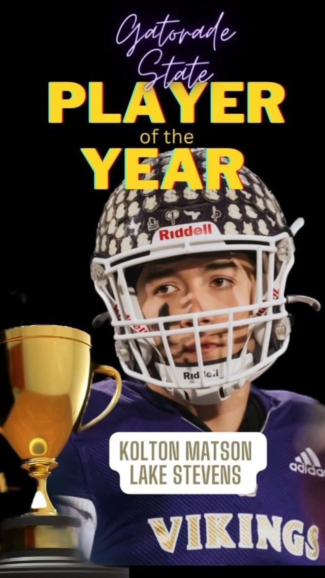BREAKING — Lake Stevens Viking junior Quarterback Kolton Matson was awarded the Gatorade State Player of the Year Wednesday — nabbing the award given annually to the state’s top player regardless of classification or position.