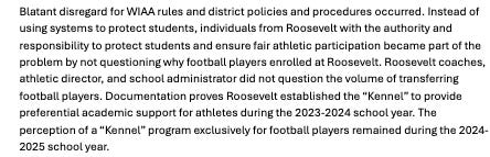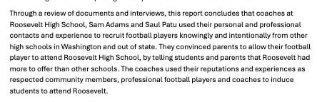 You don’t have to take my word for it. These are the findings of the WIAA investigation, and Seattle Schools acknowledges the findings. It’s just the fines against the adults they wanted removed.